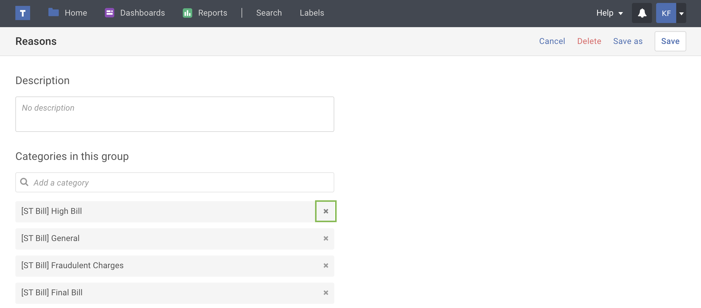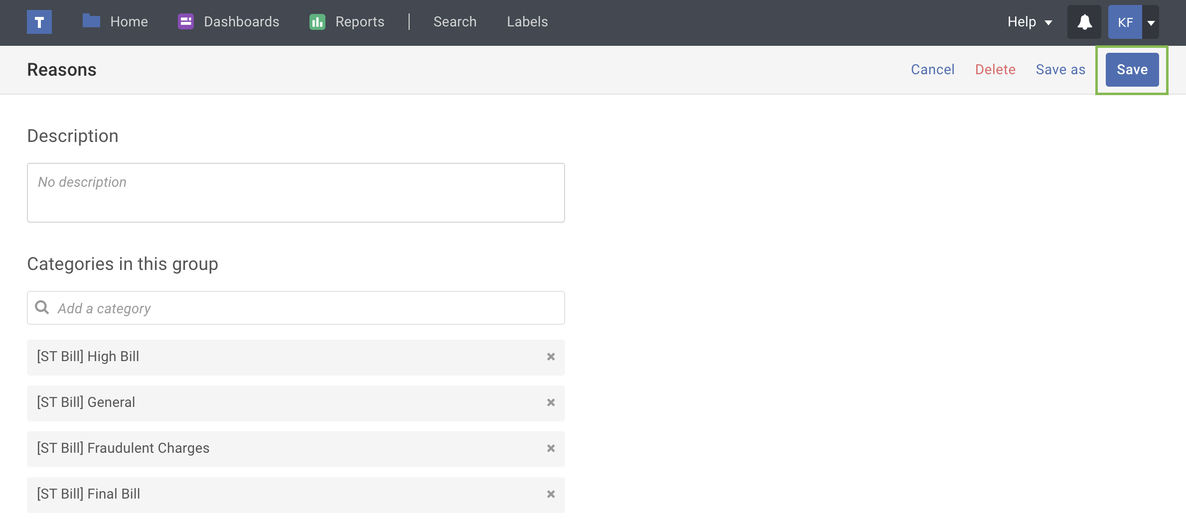 Note that any changes to a category group will be reflected in all reports that use that category group.