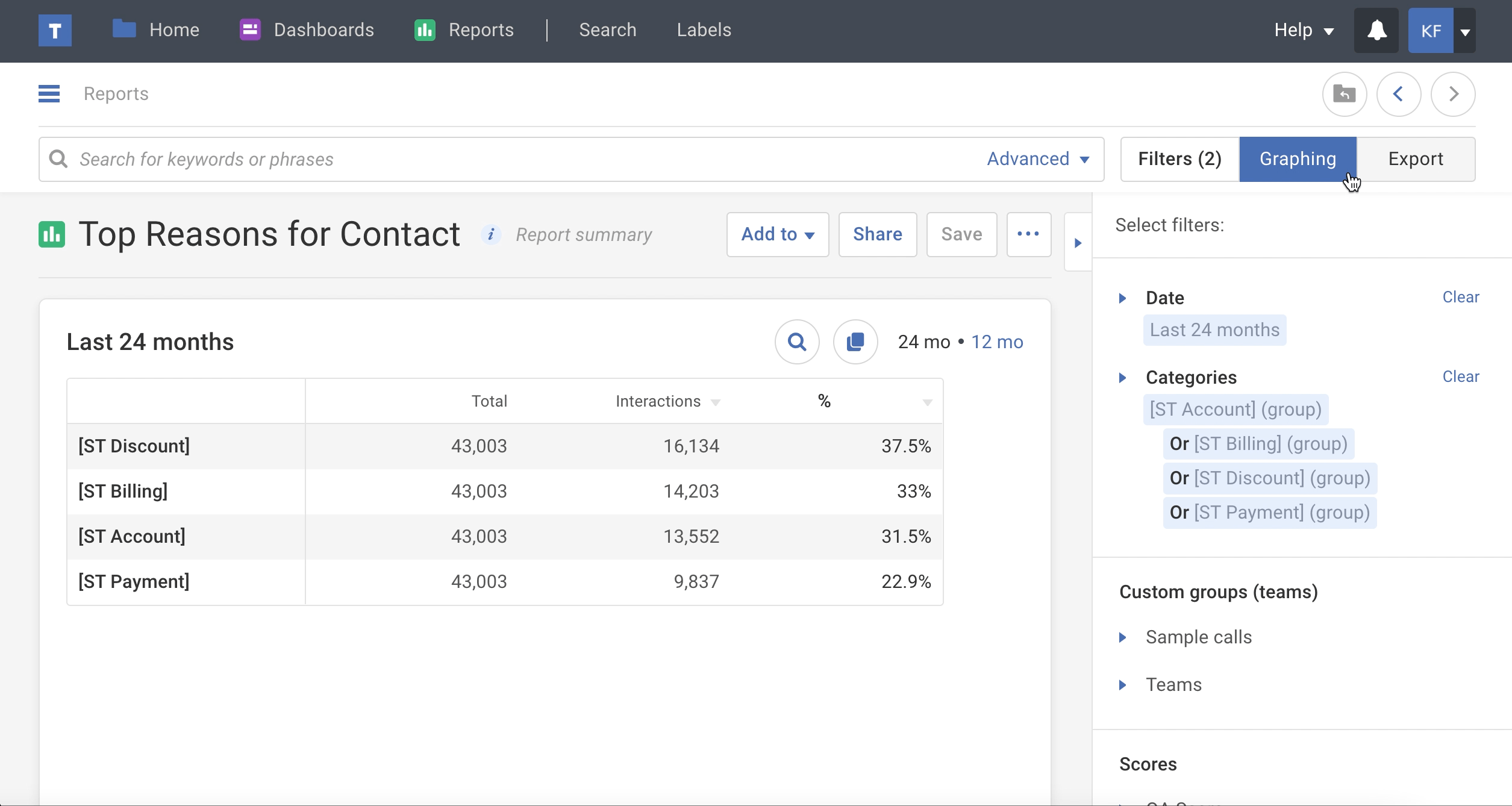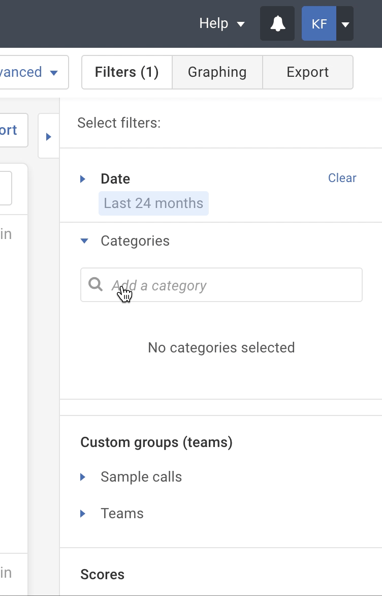 Using category groups as a filter narrows down the results to interactions that had a category hit for one or more of the categories in the group.