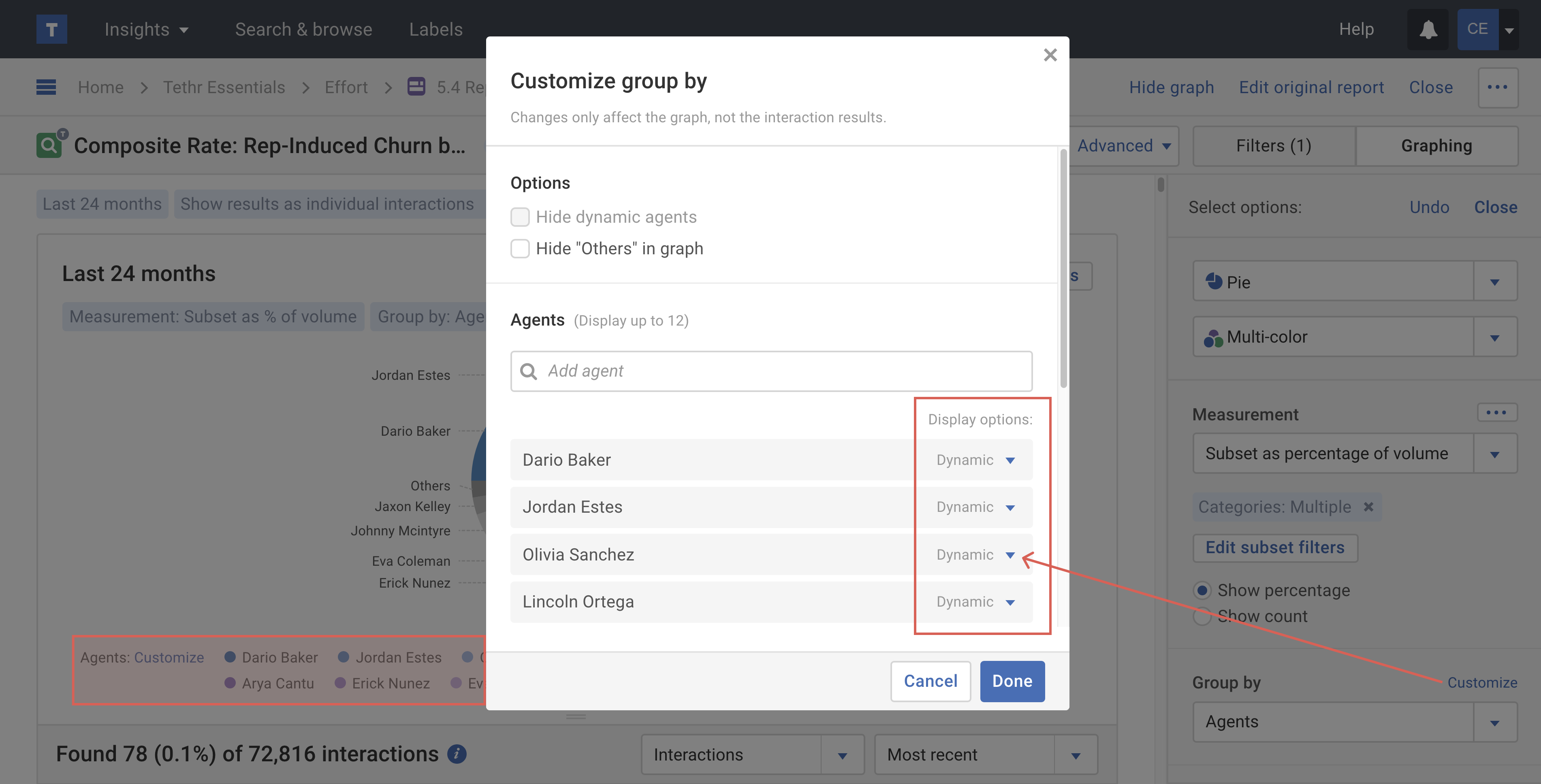 When you're graphing data you can now customize the order of your agents, categories or custom groups (teams) on your graph and in your table.