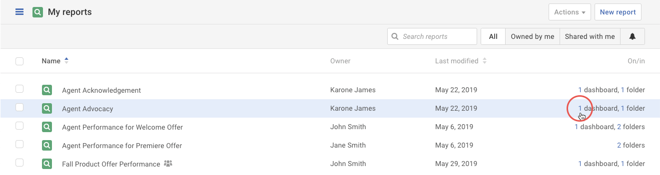 Locating your reports on dashboards and folders