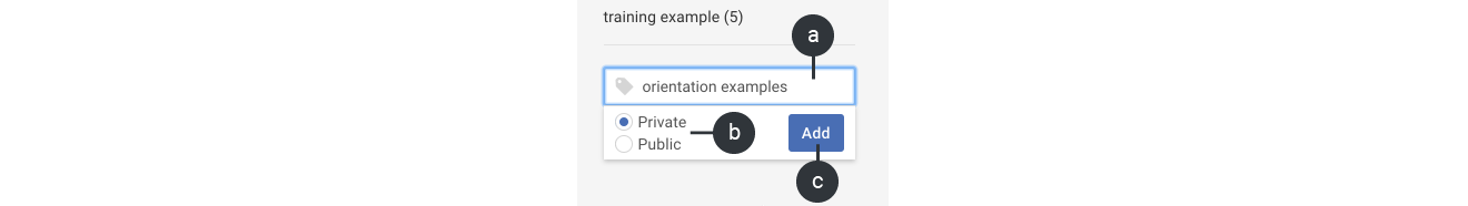 a) Type your new label name (for example, "orientation examples").
